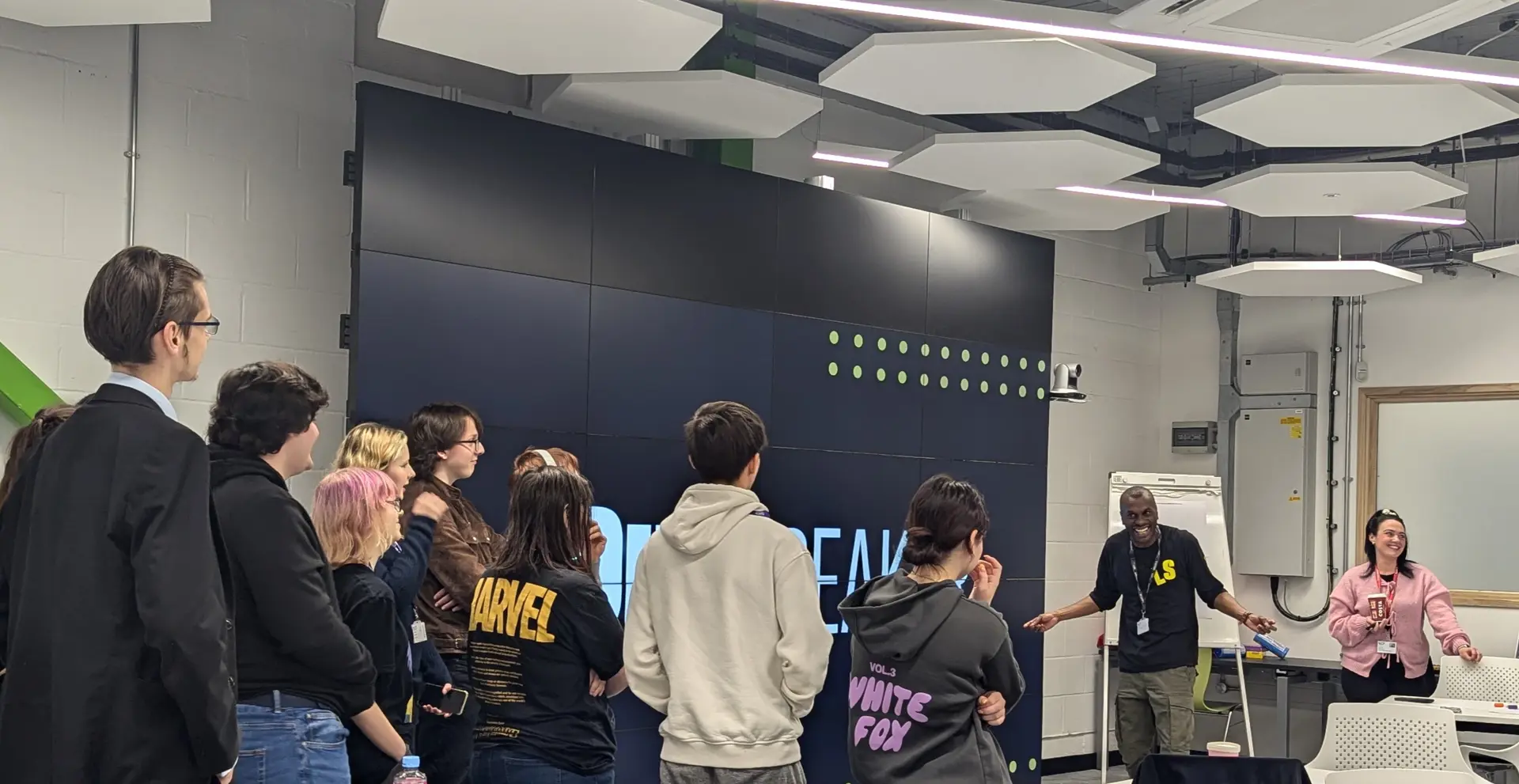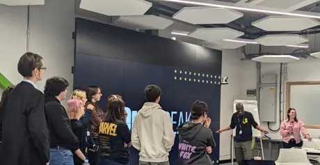 the Emerging Technologies Studio as Student Union members and staff listened to the animated, lively speaker.