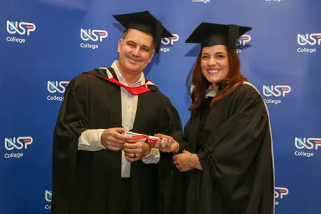 CEO Dan Pearson opened the ceremony with heartfelt praise, telling graduates, “On behalf of the Principal, Vice Principal and myself, we are incredibly proud of all you’ve achieved. USP College will always be part of your story, a foundation for the bright future ahead.”