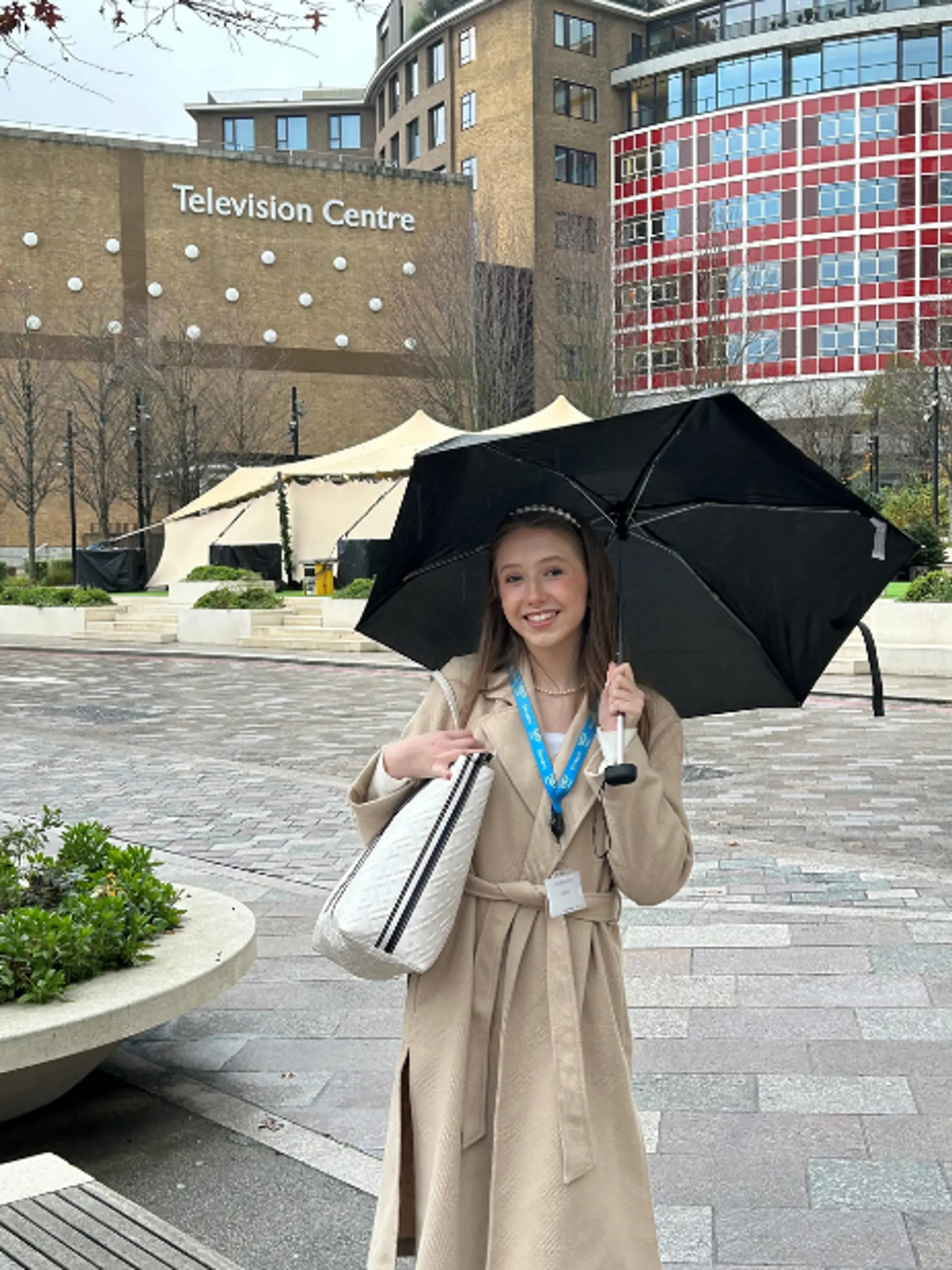 During the work experience, she spent time with comedian Katherine Ryan during filming at the BBC Studios and at a fashion shoot, as well as attending the launch of the dressing for the spotlight book of fashion designer Pamella Roland.